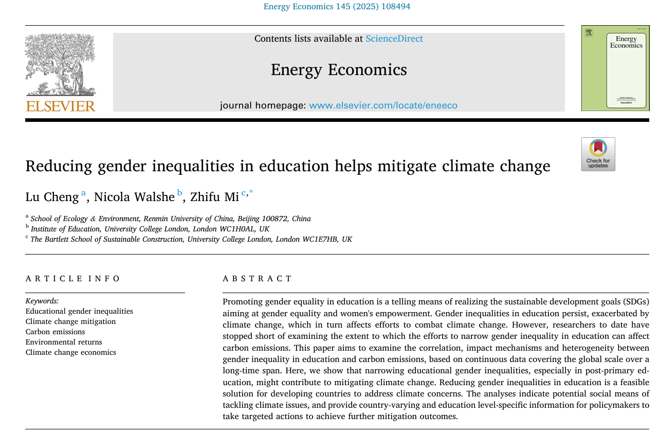 Lu Cheng et al : Reducing gender inequalities in education helps mitigate climate change