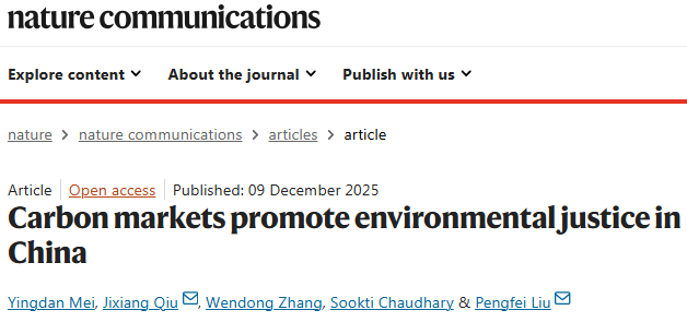 近日,性交视频 梅应丹副教授以第一作者身份在国际综合顶级期刊《Nature Communications》发表题为“Carbon markets promote environmental justice in China”的学术论文。