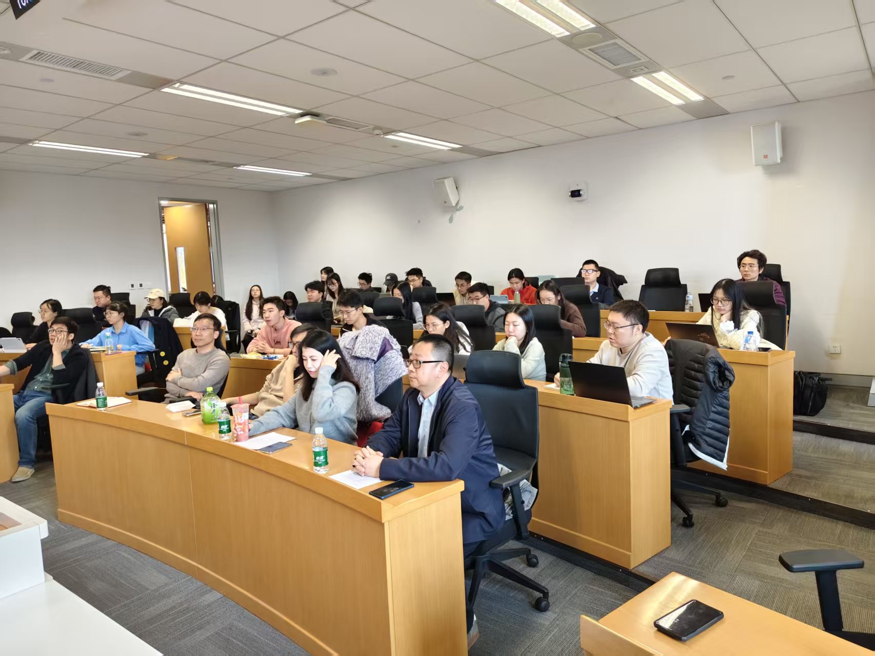 在交流讨论环节,与会师生围绕报告中展示的房价与距离关系图、事件研究结果等,就模型设定、数据构建和识别策略等关键问题与刘鹏飞教授展开了深入交流。大家重点讨论了如何在具体模型中区分外部性效应与土地用途变化带来的供给冲击,在统一框架下处理不同设施、不同区域异质性效应的具体做法。围绕房产税和房地产市场数据在研究中的作用、制度差异,进一步探讨了这些差异对模型可移植性和结果解释所带来的约束,并讨论在新能源布局中如何综合纳入生物多样性等因素。刘鹏飞教授结合具体研究案例,对上述问题作出回应,并分享了研究团队在数据获取、指标构建和与政府部门合作中的学术研究经验,也鼓励同学们开展具有中国特色的环境经济学实证研究。